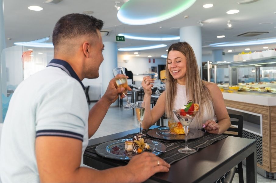 Incluye el desayuno buffet en nuestro restaurante, un espectacular momento imprescindible para vivir unas vacaciones en primera línea de playa.